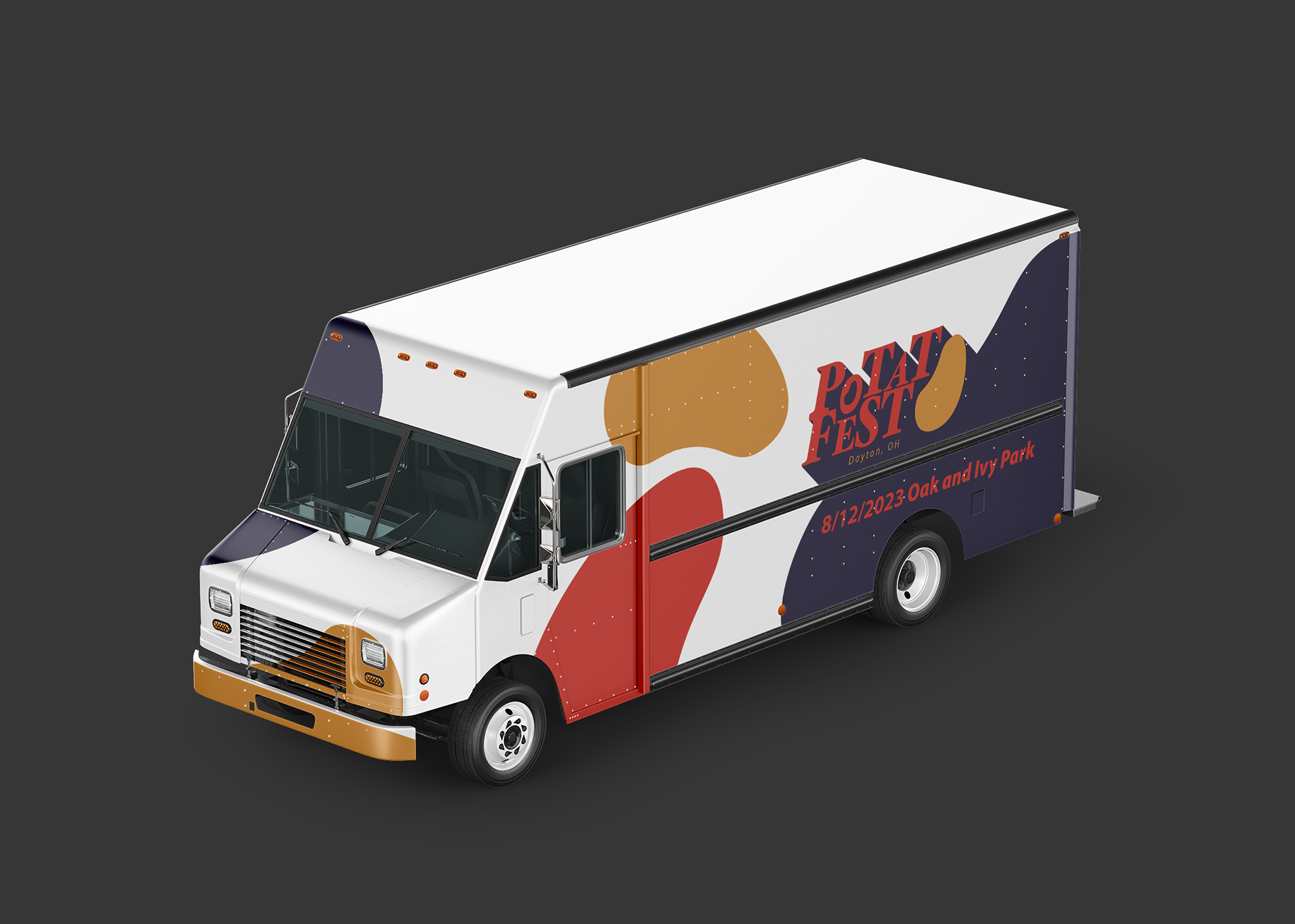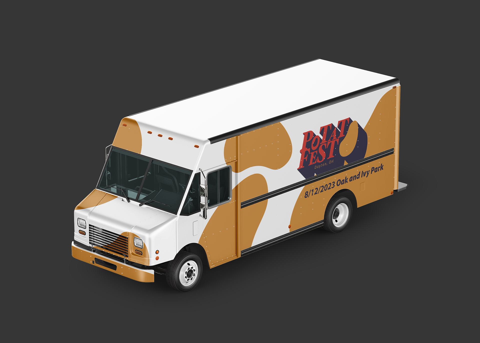 To further explore the brand's identity, I created touchpoints to represent how it would interact in the world. They bring in a lot of food trucks that prepare potato dishes and they hold the whole festival in a park in downtown Dayton, OH. The food truck and the park were what I focused on making my touchpoints around.
