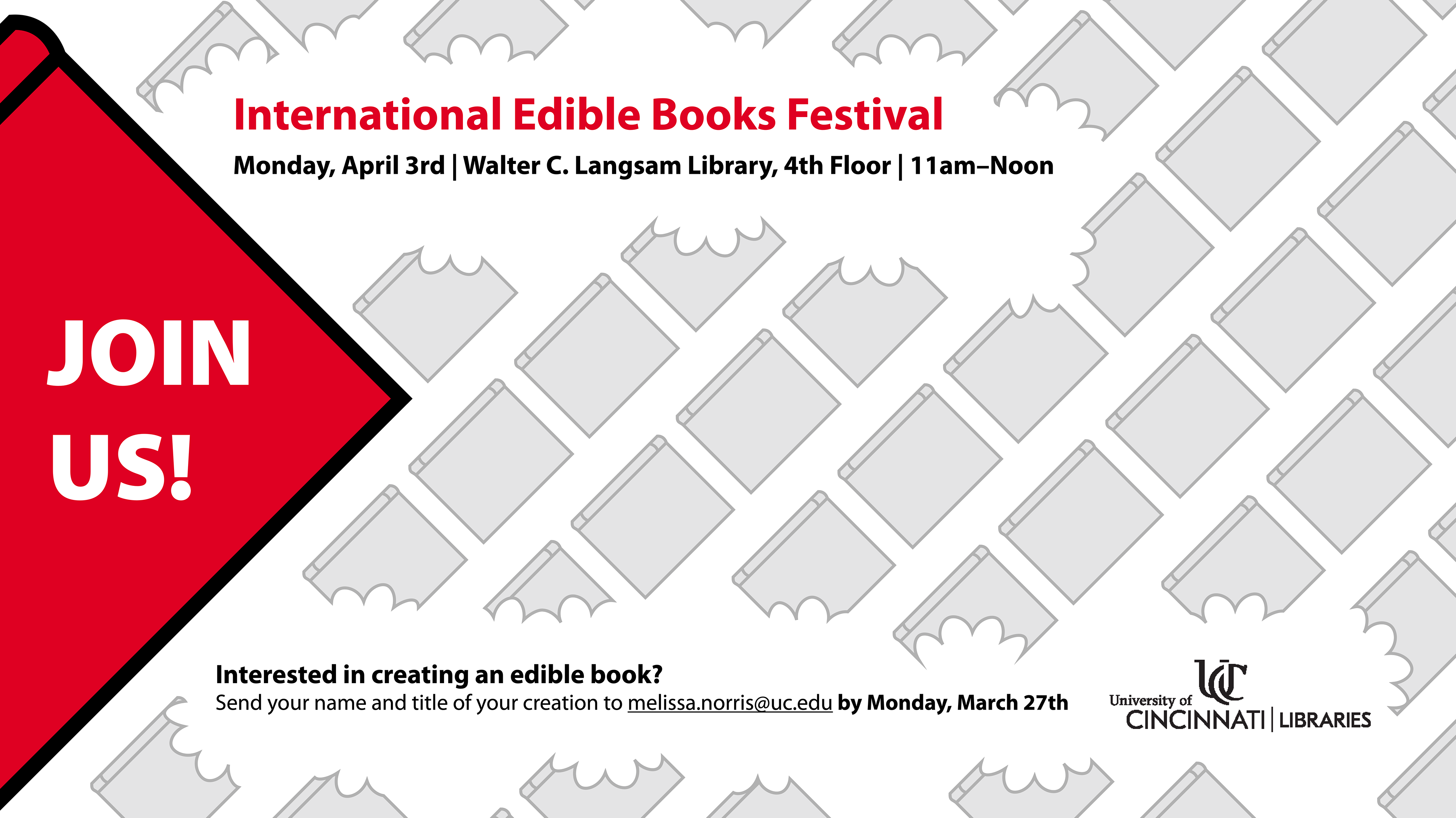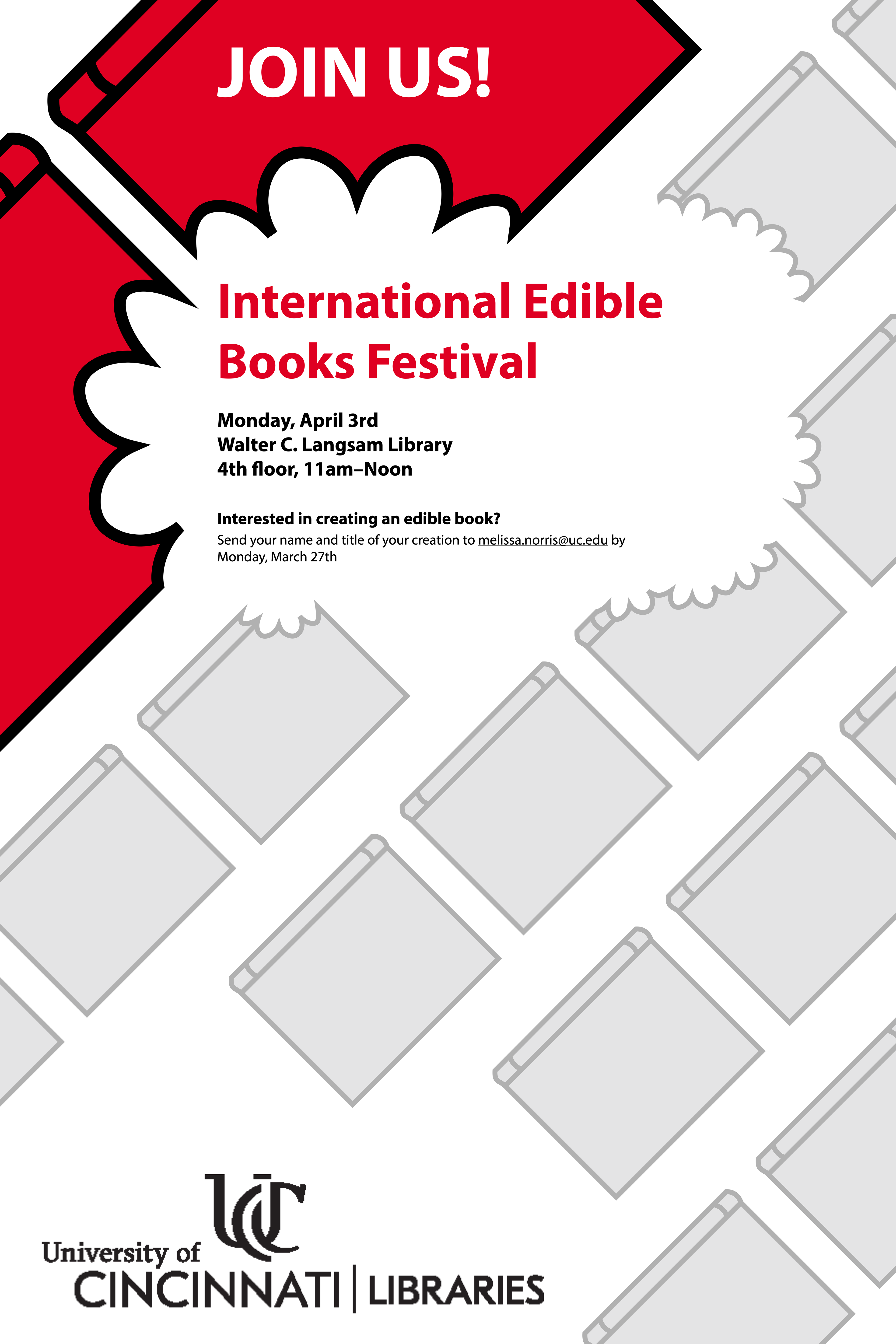 The Edible Books event was originally created by librarian Judith A. Hoffberg to celebrate the birthday of Jean Brillat-Savarin, the author of "Physiologie du goût, a witty meditation on food". People typically celebrate the event by making baked goods and/or edible foods based on, or around, books! Since 2001, on or around April 1st, UC Libraries has participated in the event.