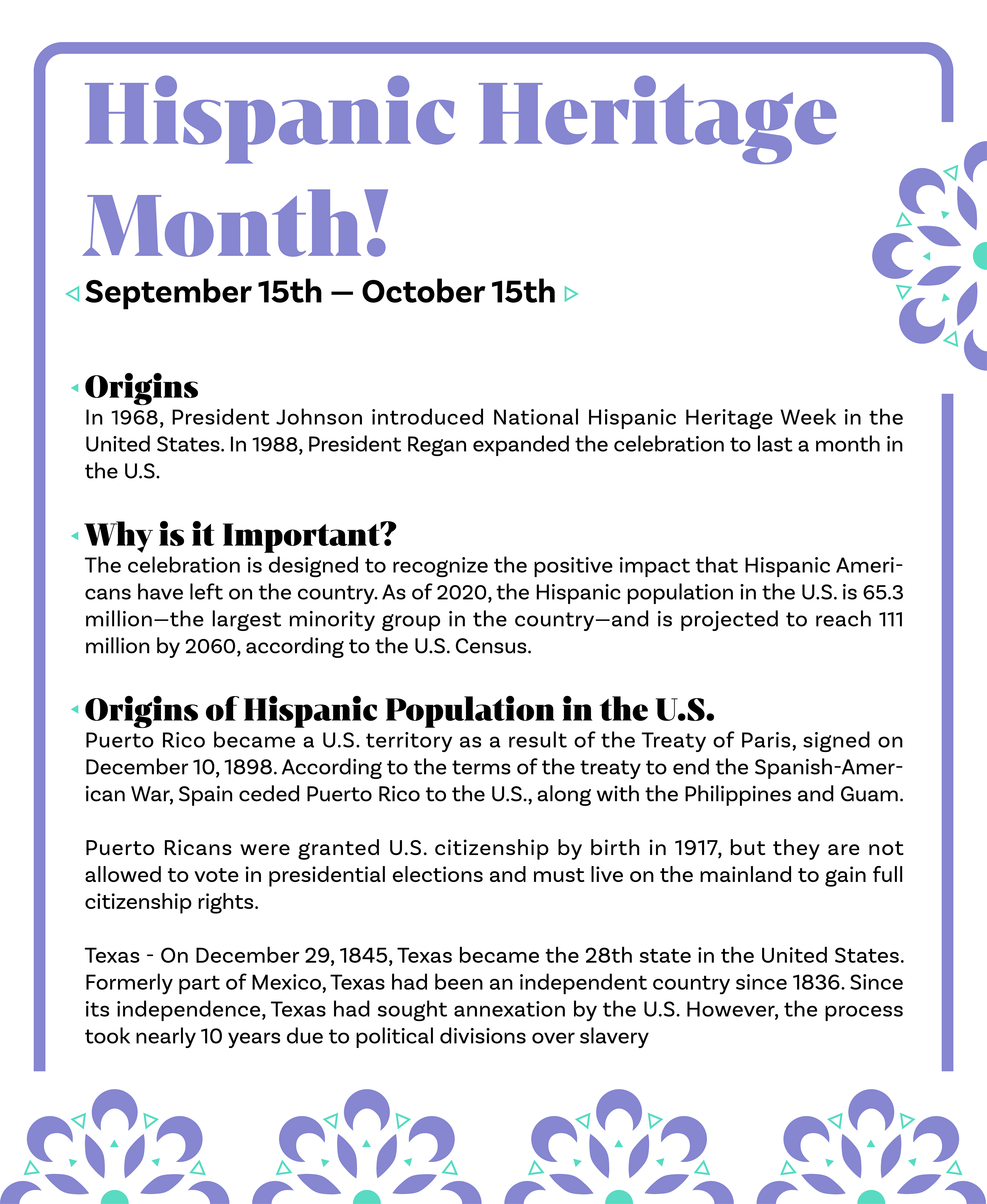Hispanic Heritage Month is from September 15th to October 15th. This exhibit covers a lot of amazing statistics about how many Hispanic people are living in the United States and also features a collection of books about Hispanic culture, by Hispanic authors.