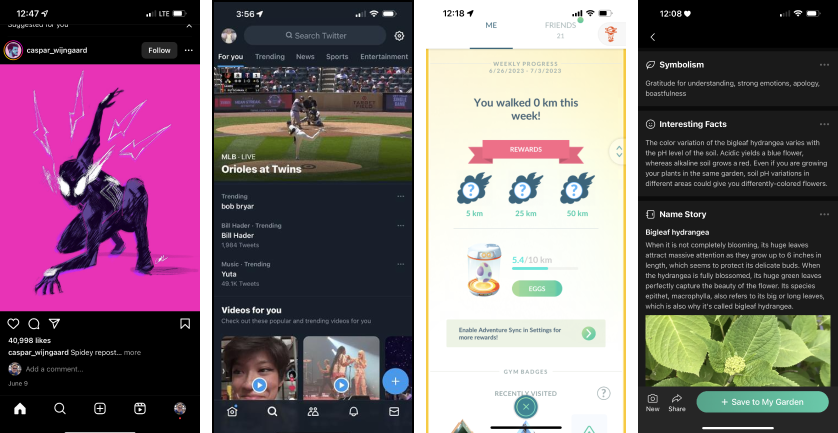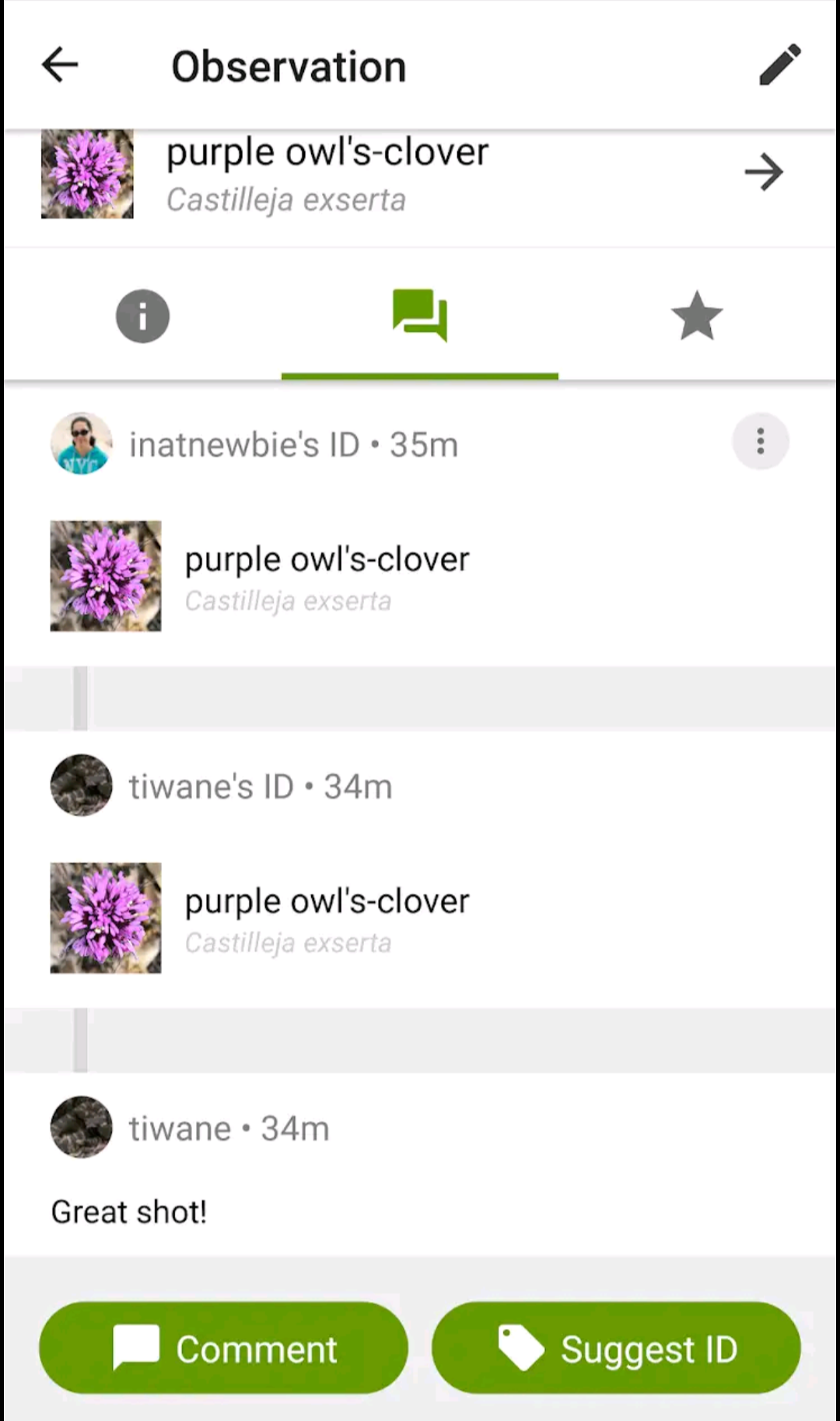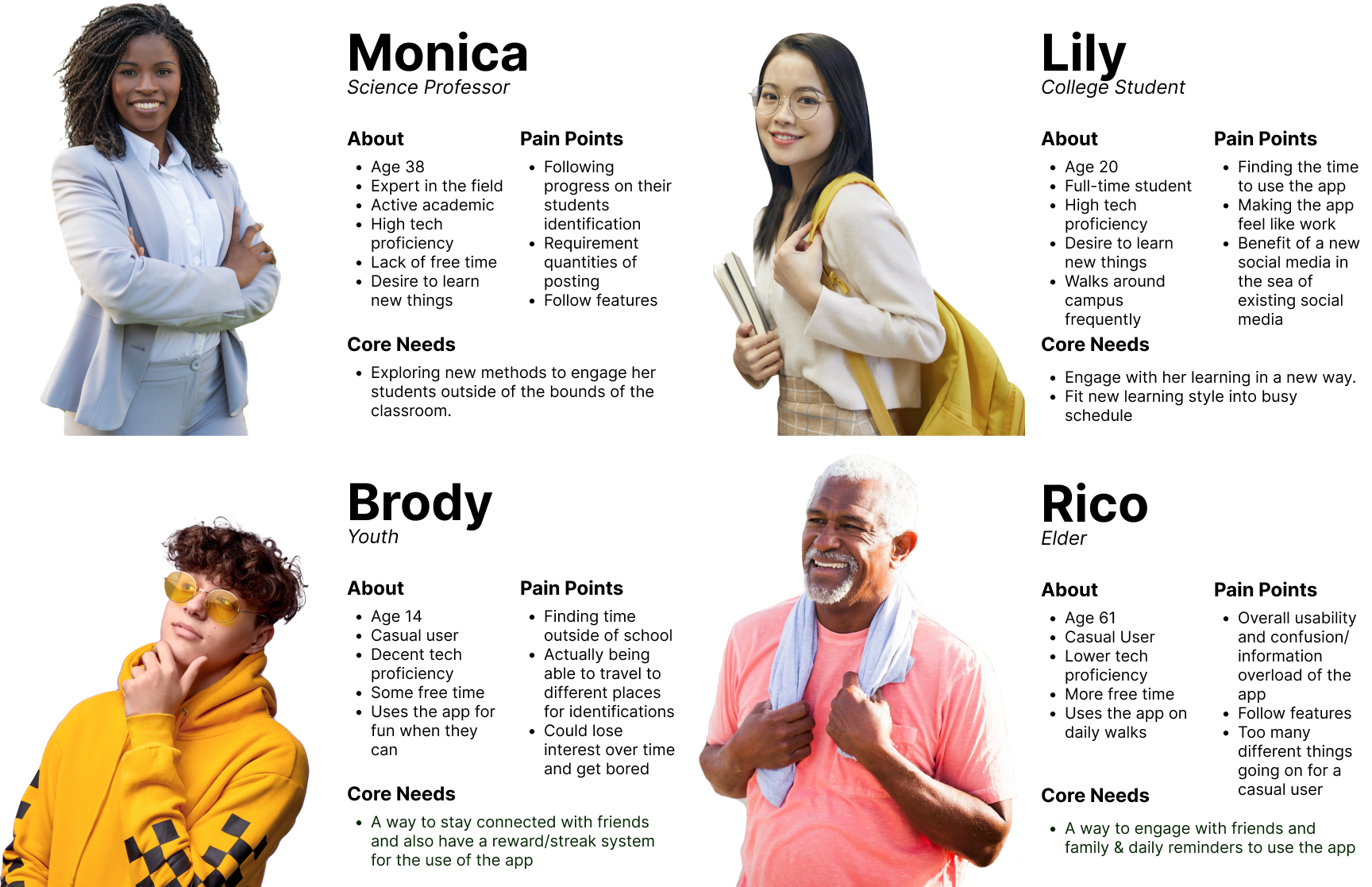 We looked at apps that had social/user-to-user interaction features. iNaturalist has great information but the user-to-user interactions aren't strong.