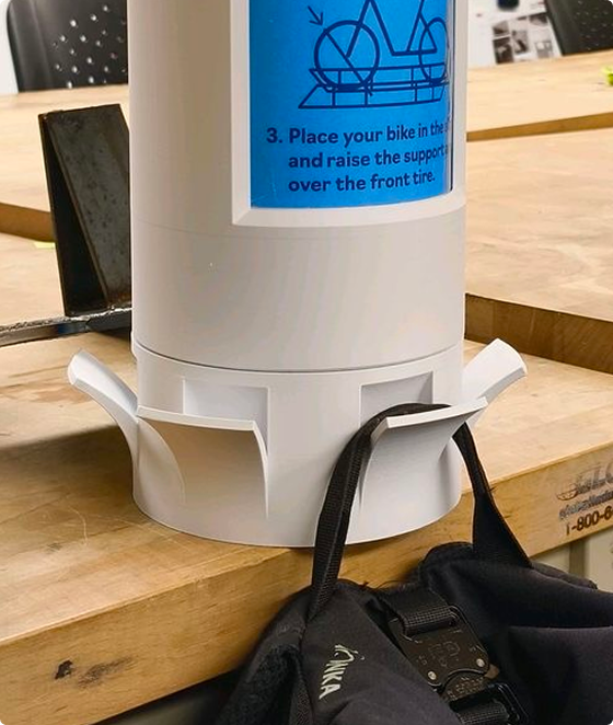 Our final hook module design features a 3 pronged system allowing for plenty of space for bags. We decided to remove the hook on the backside to avoid users from interacting with the pole too close to the road.