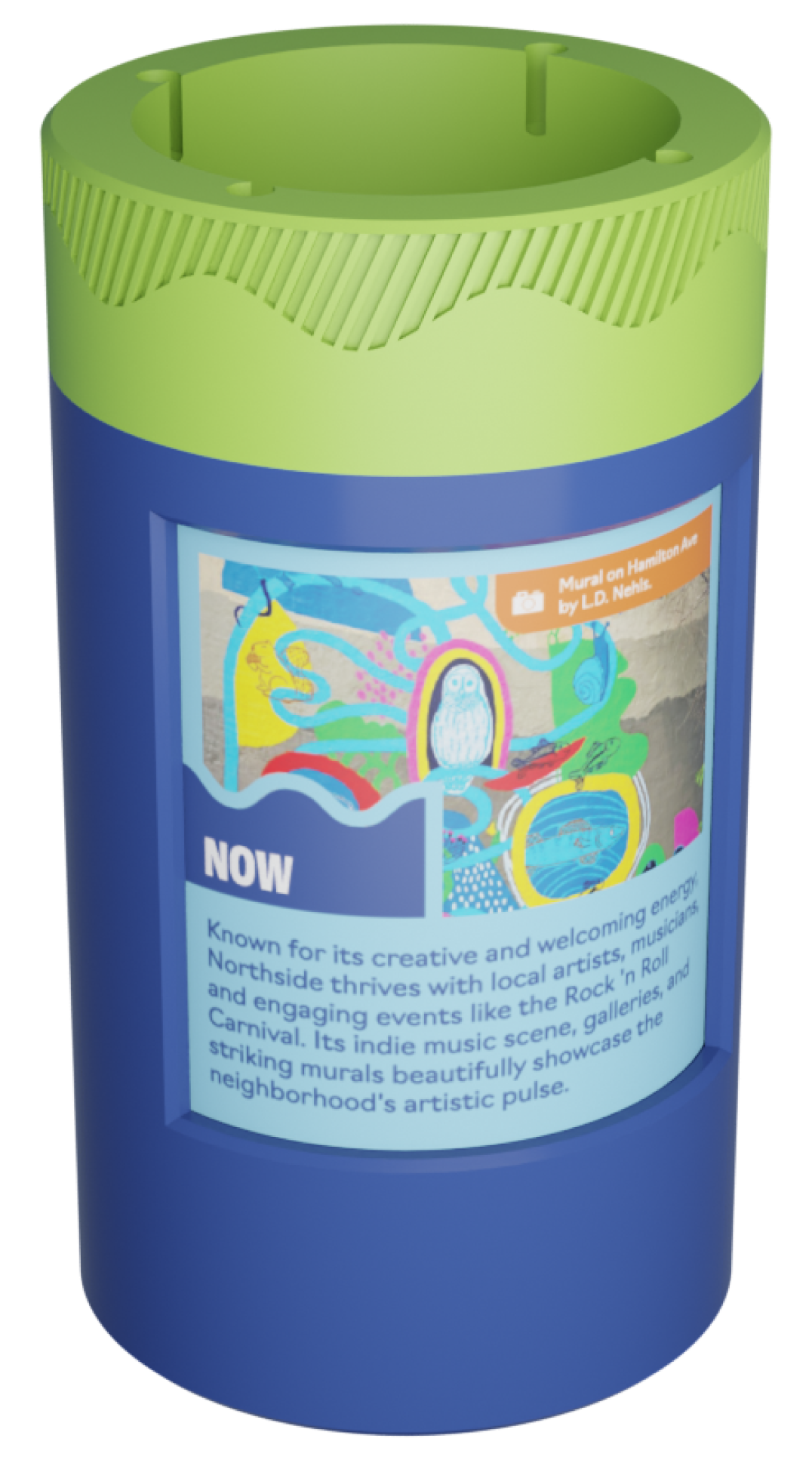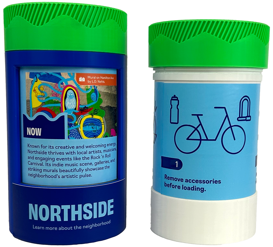 We created a system of crowns inspired by Cincinnati’s nickname “The Queen City”. The different crown types represent the different aspects of Cincinnati’s neighborhoods that make up the Cincinnati area.