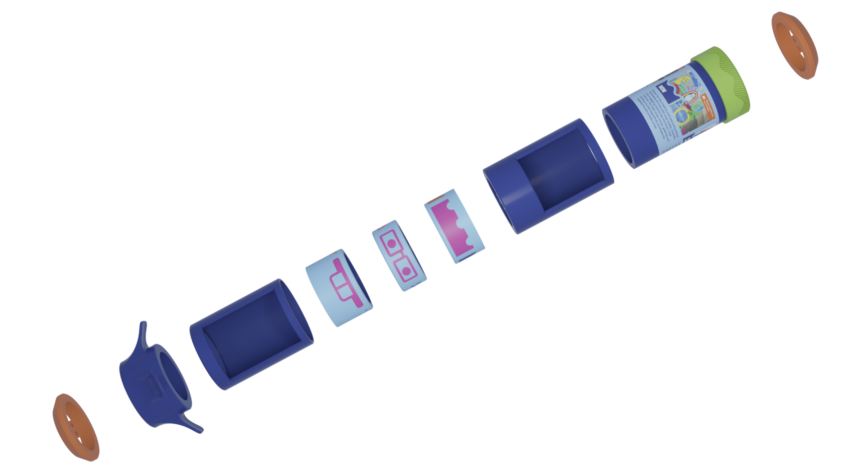 Our final info module design features a 3 part system that includes the crown, the outer sleeve, and the inner sleeve. This allows for easy interchangeability of the parts.