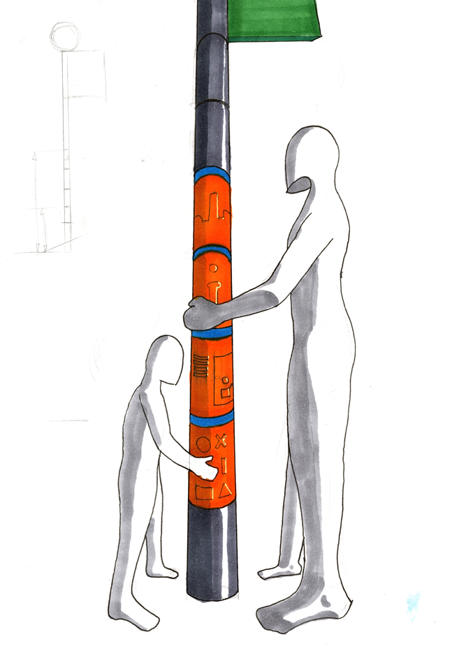Our idea was to create a cylindrical and modular system that would allow users to interact directly with the bus stop pole.